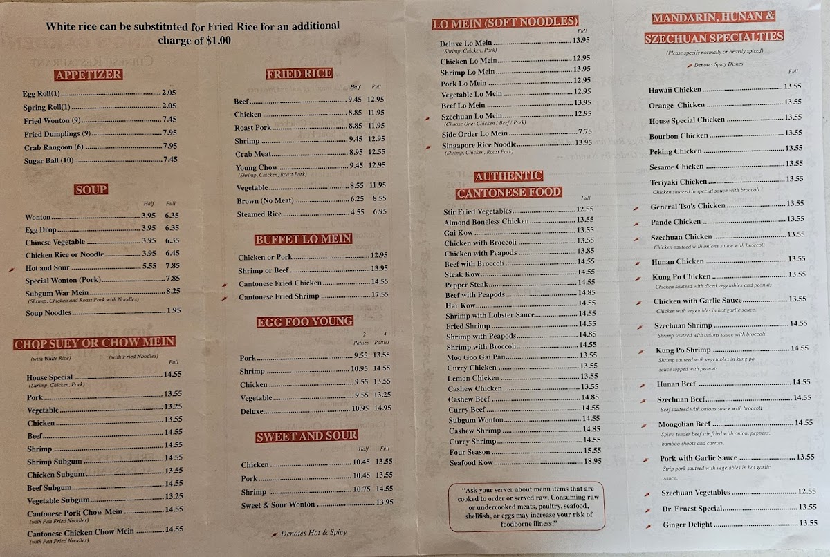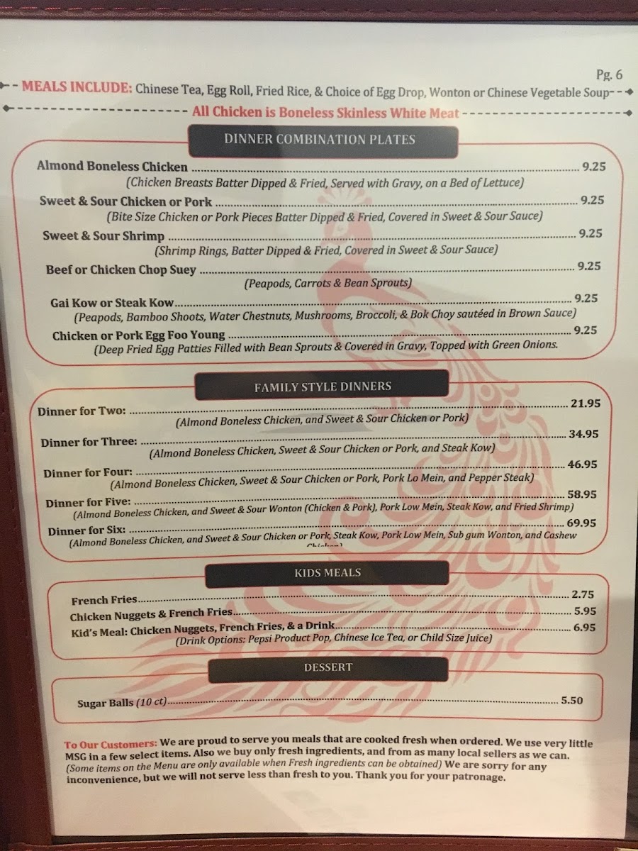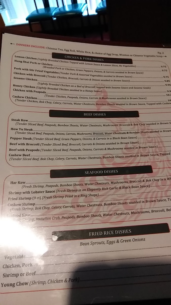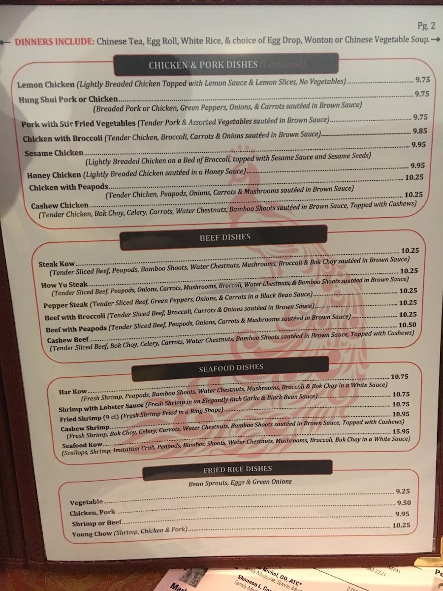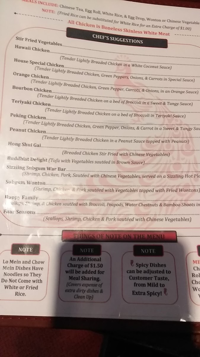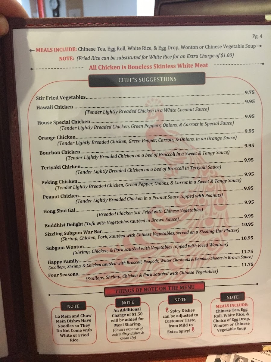 Highlights from the menu like Peking Chicken, Bourbon Chicken, and Sesame Chicken provide flavorful choices that pair well with the simple, relaxed atmosphere of the restaurant. Alongside these, lighter offerings such as Chinese Vegetable Soup and dishes like Chicken with Broccoli invite moments of quiet enjoyment, whether for a casual lunch or a comforting dinner after a long day.